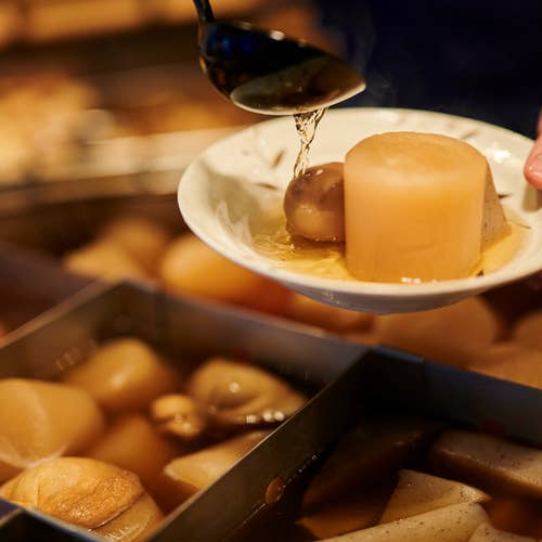 当店は”あごだし”と”鶏だし”の2種類の出汁を使用し、食材の美味しさを生かした創作おでんが味わえます。またおでん屋とは思えない新鮮な”お刺身”、季節に合わせて日本酒もご用意しております。大根も1つずつ店舗で仕込み、食材と調理にこだわった商品をご提供しております。どこか懐かしい中にも新しさを感じられるお店となっております。